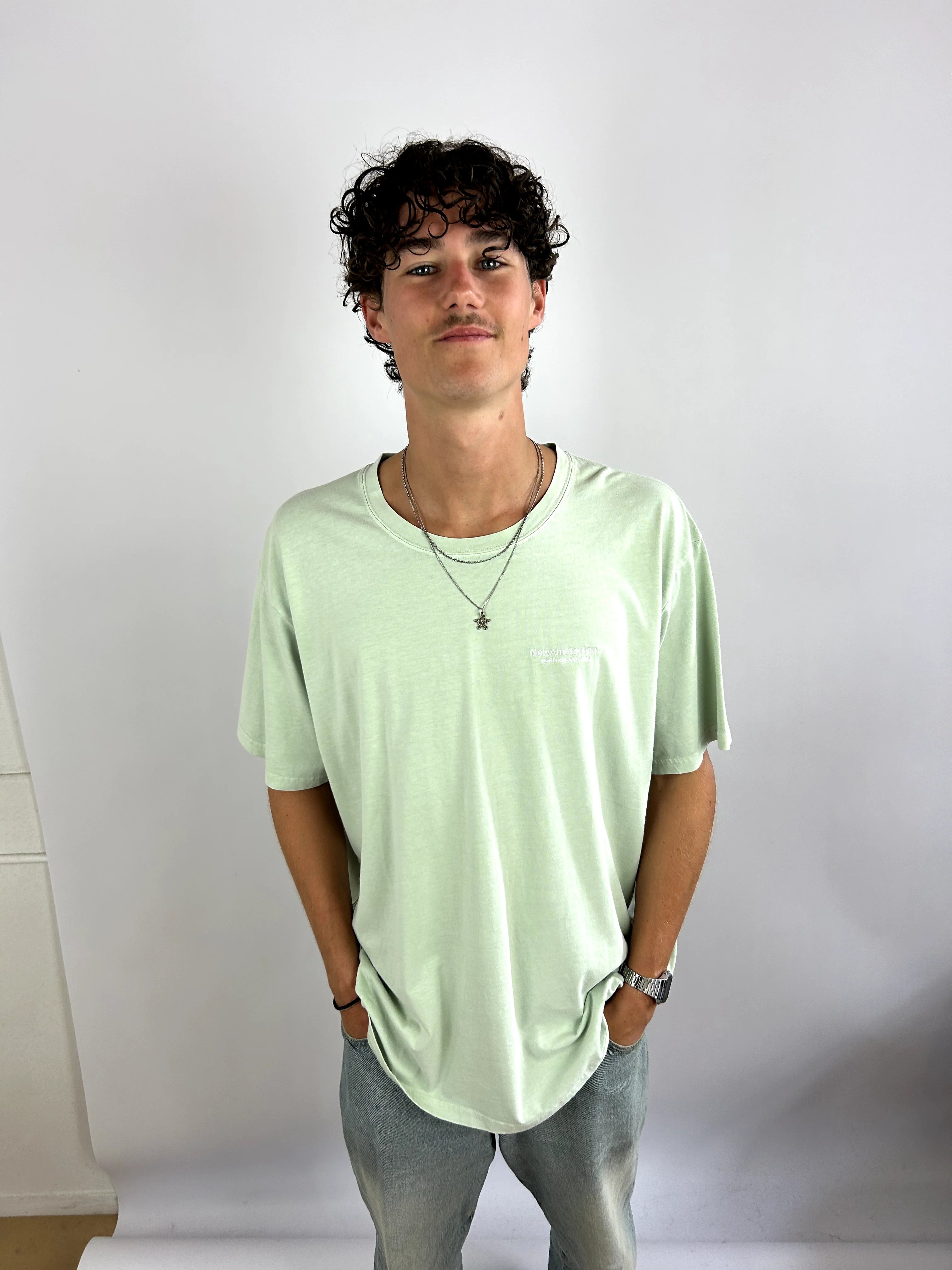 Product details: Lichtgroen, ronde hals, slimming fit, klein borstlogo.