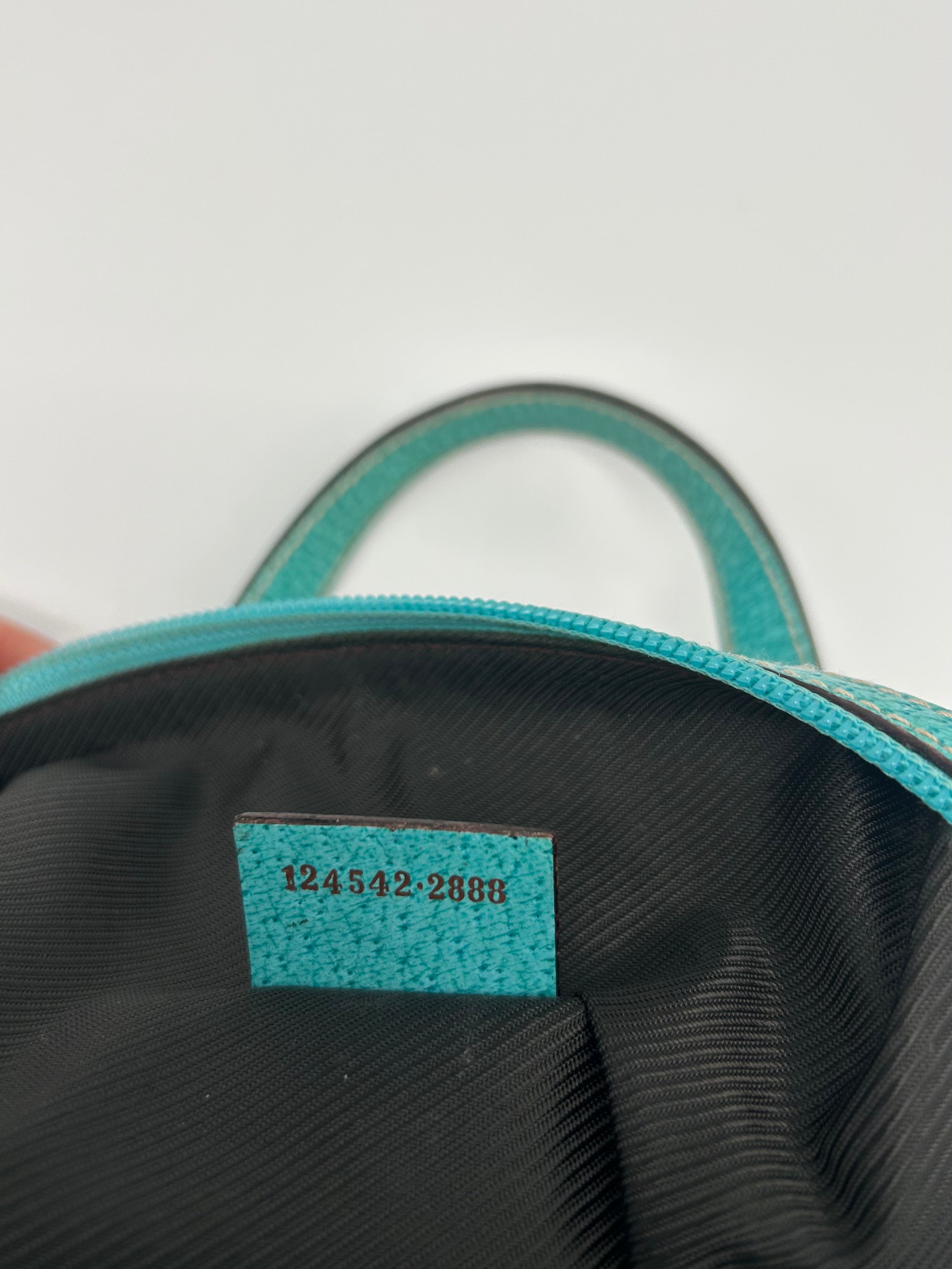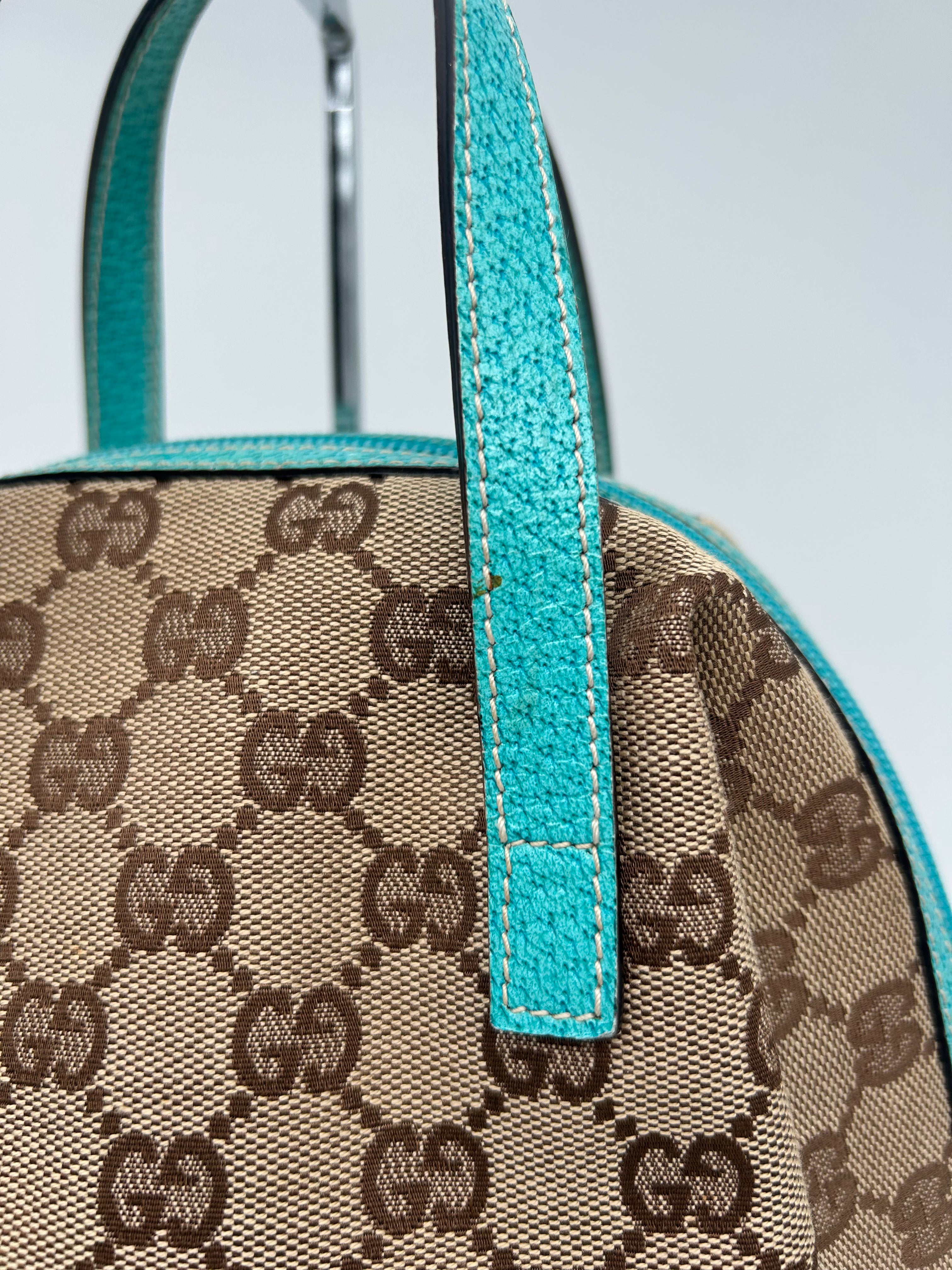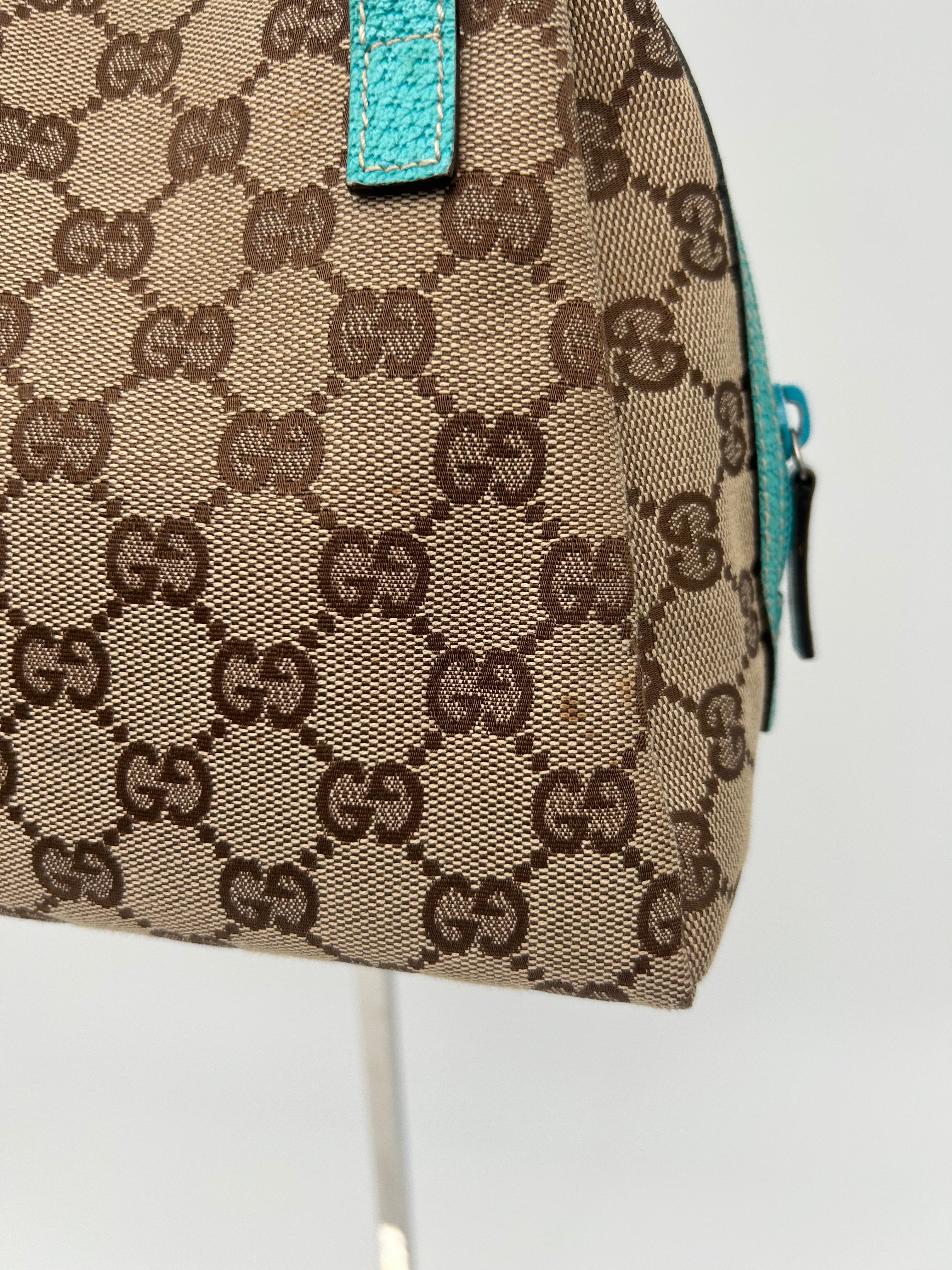 Gucci GG Canvas Handbag, geproduceerd tussen 2000 en 2010, met afmetingen 24 × 18 × 11 cm (width × height × depth), met code 124542 2888. De tas verkeert in goede vintage staat, met kleine gebruikssporen die op de foto zichtbaar zijn, verder zorgvuldig gecontroleerd op authenticiteit en kwaliteit.