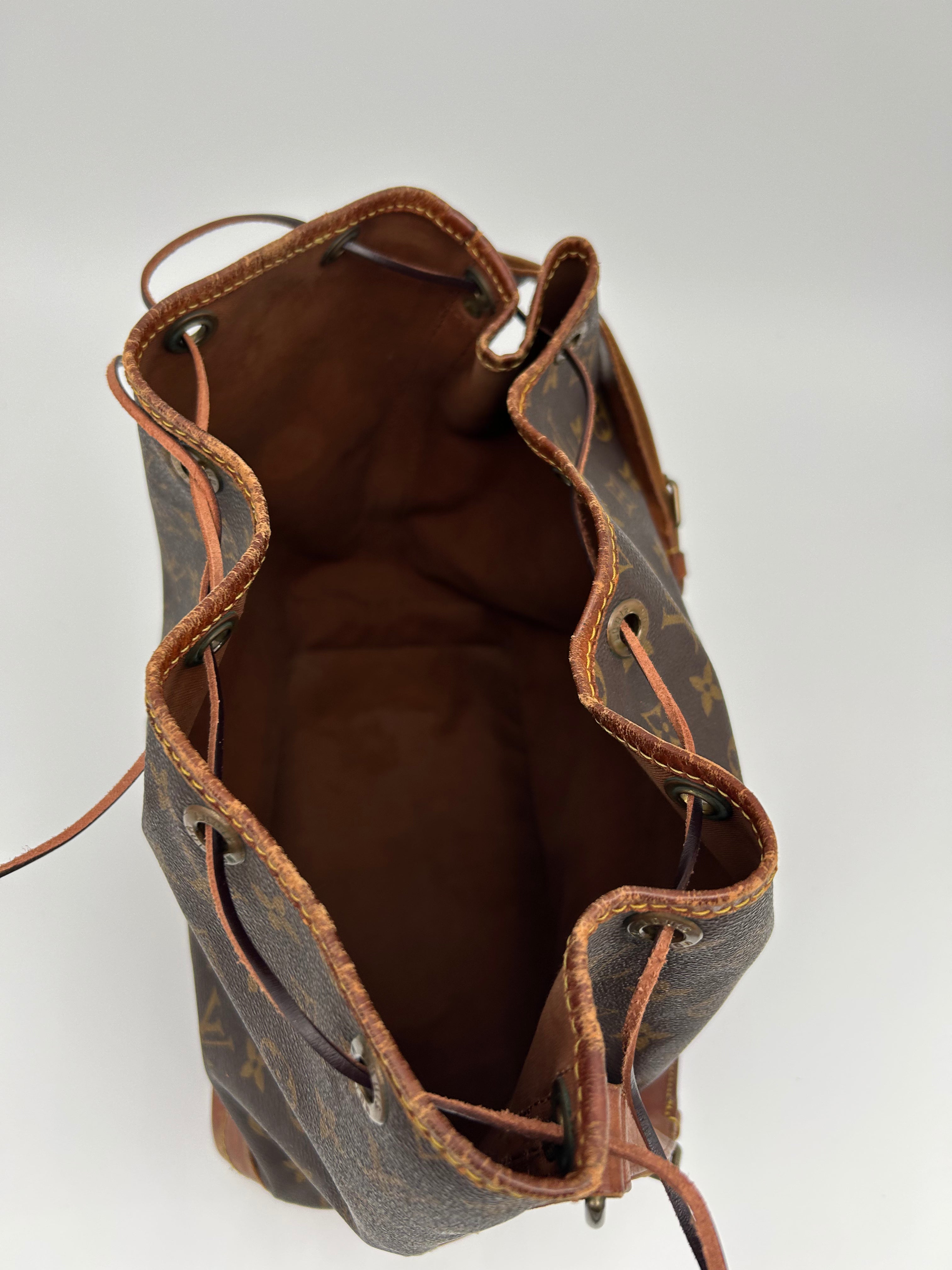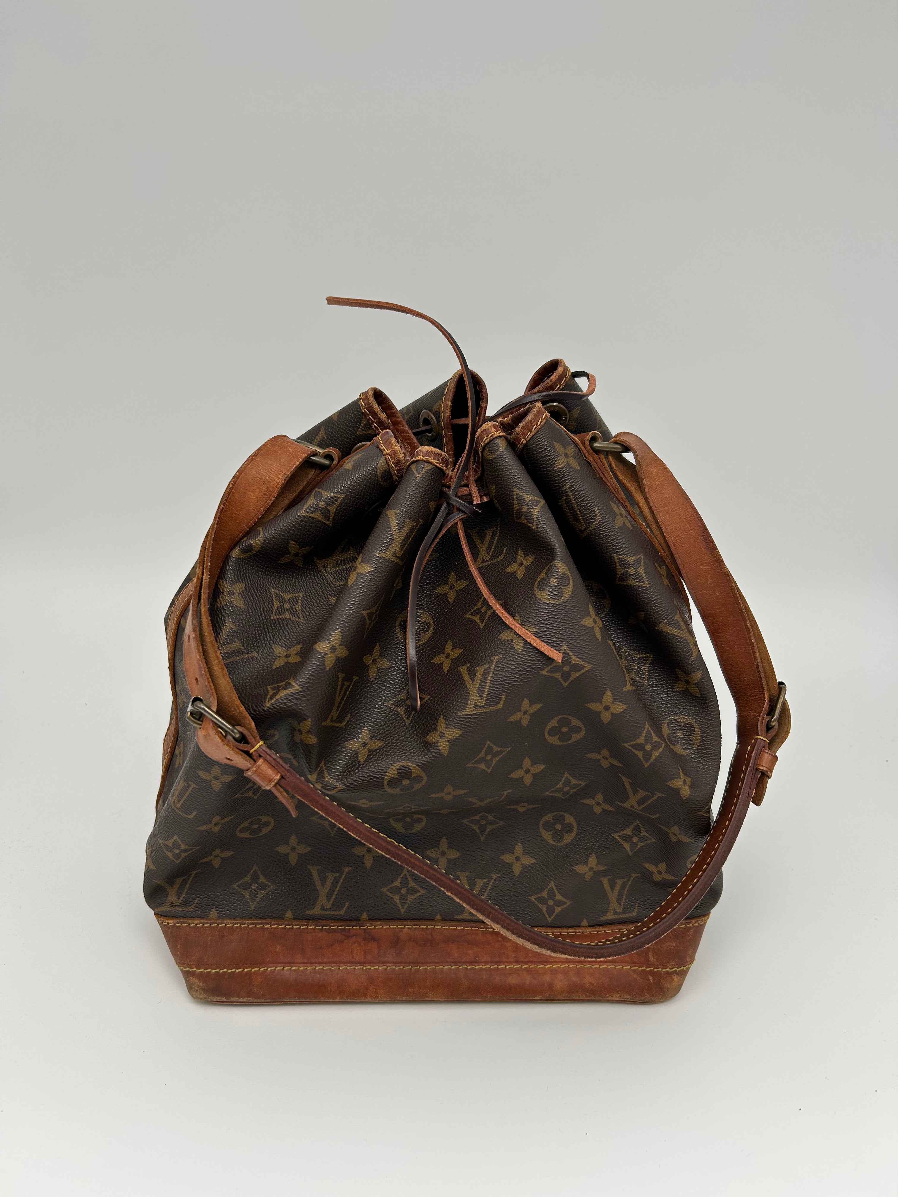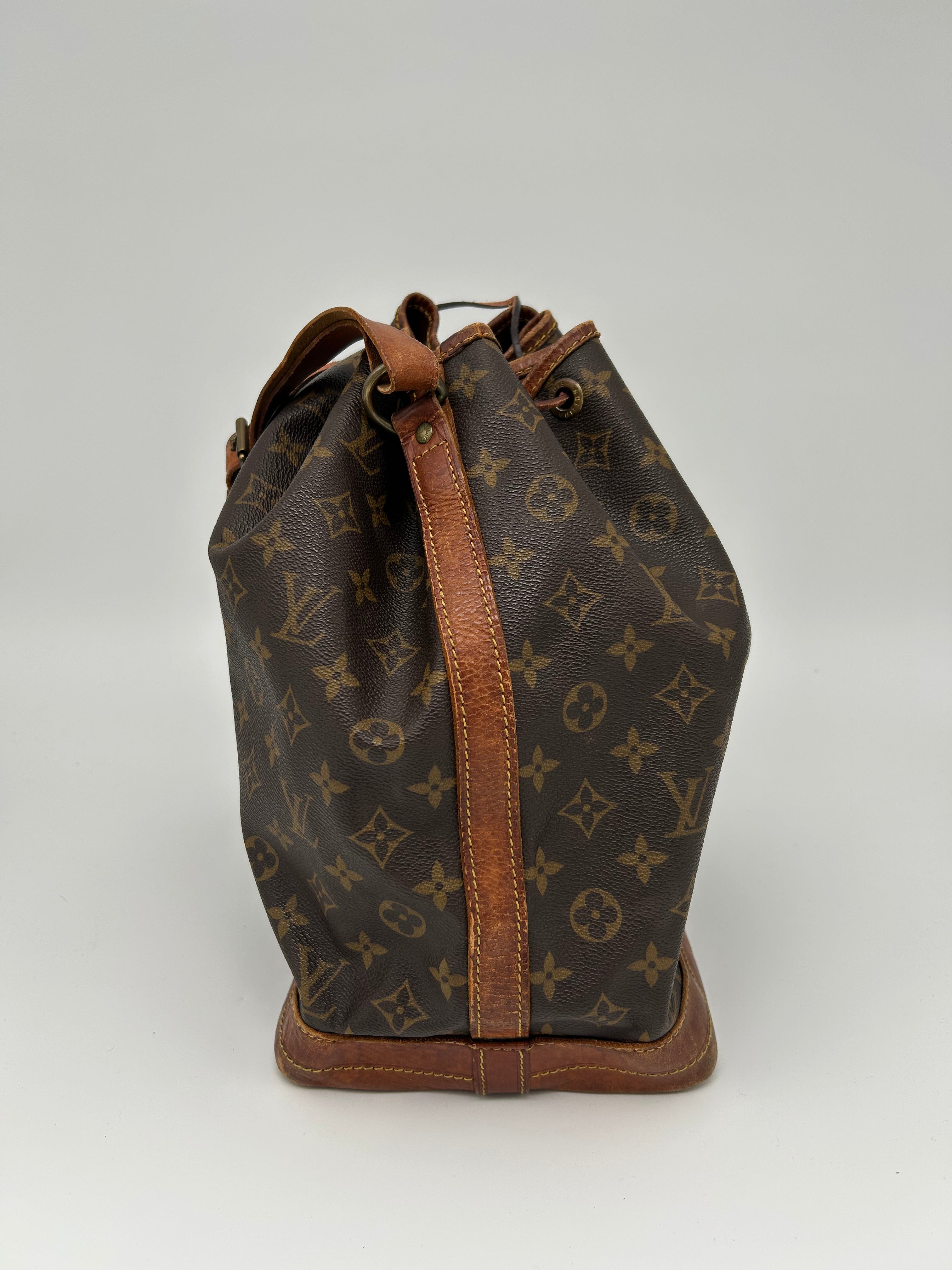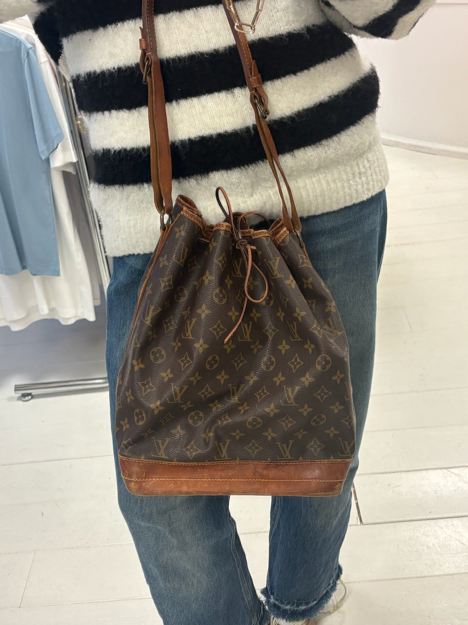 Louis Vuitton Petit Noé, geproduceerd in 1990, met afmetingen 25 x 27 x 18 cm (width x height x depth). De tas verkeert in goede vintage staat en is zorgvuldig gecontroleerd op authenticiteit en kwaliteit.