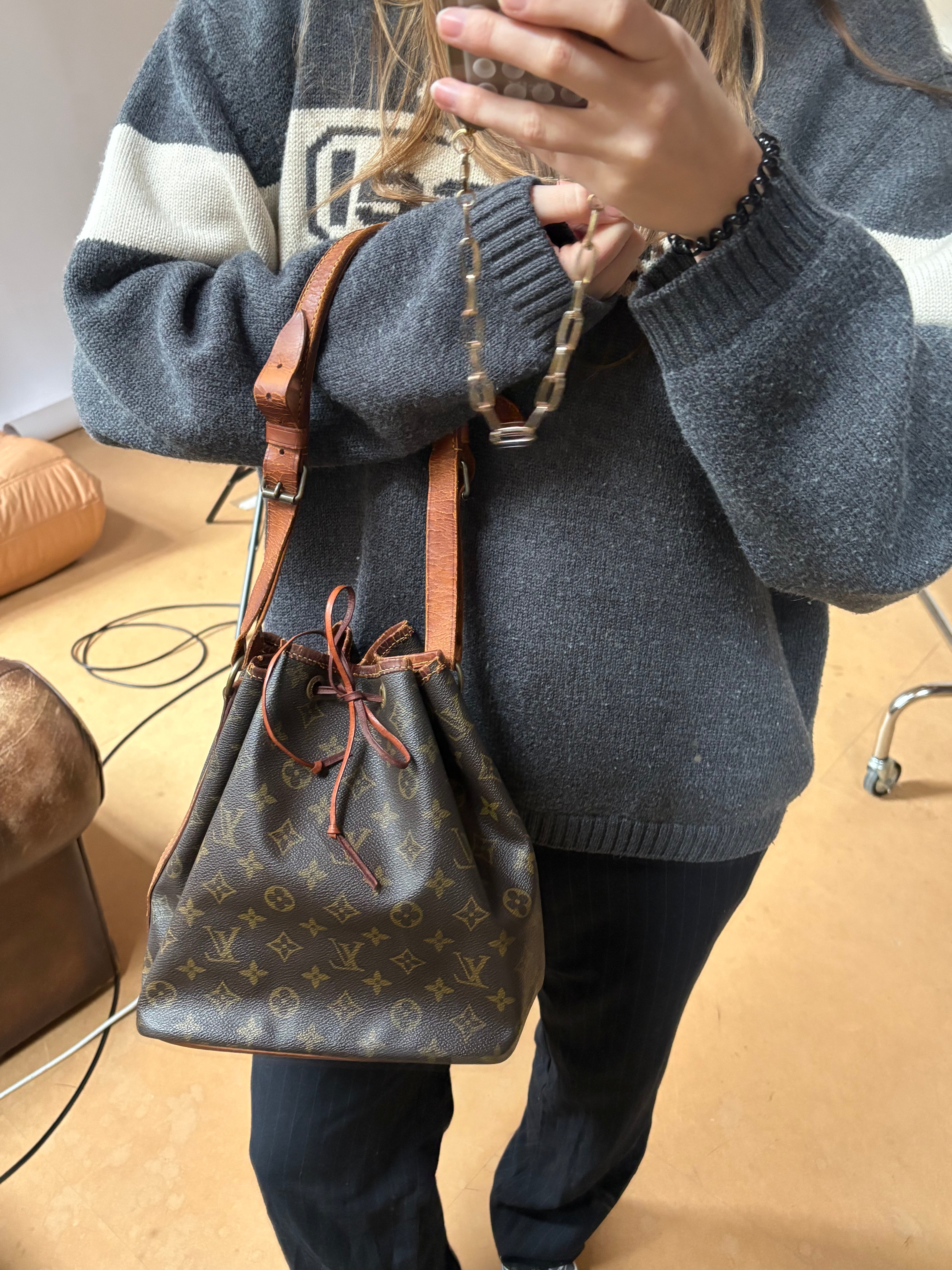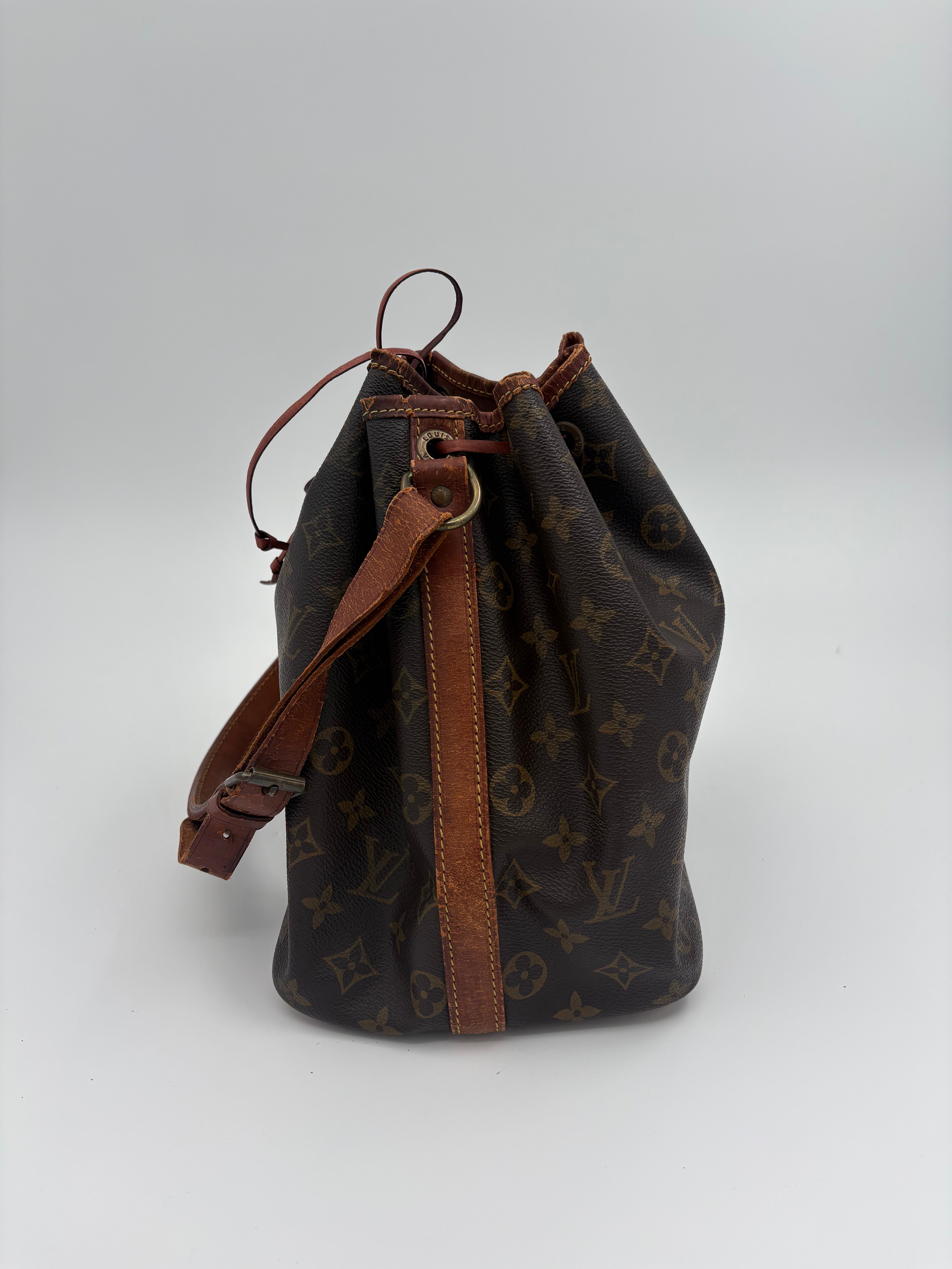 Louis Vuitton Petit Noé, geproduceerd in 1988, met afmetingen 25 x 27 x 18 cm (width x height x depth). De tas verkeert in goede vintage staat en is zorgvuldig gecontroleerd op authenticiteit en kwaliteit.