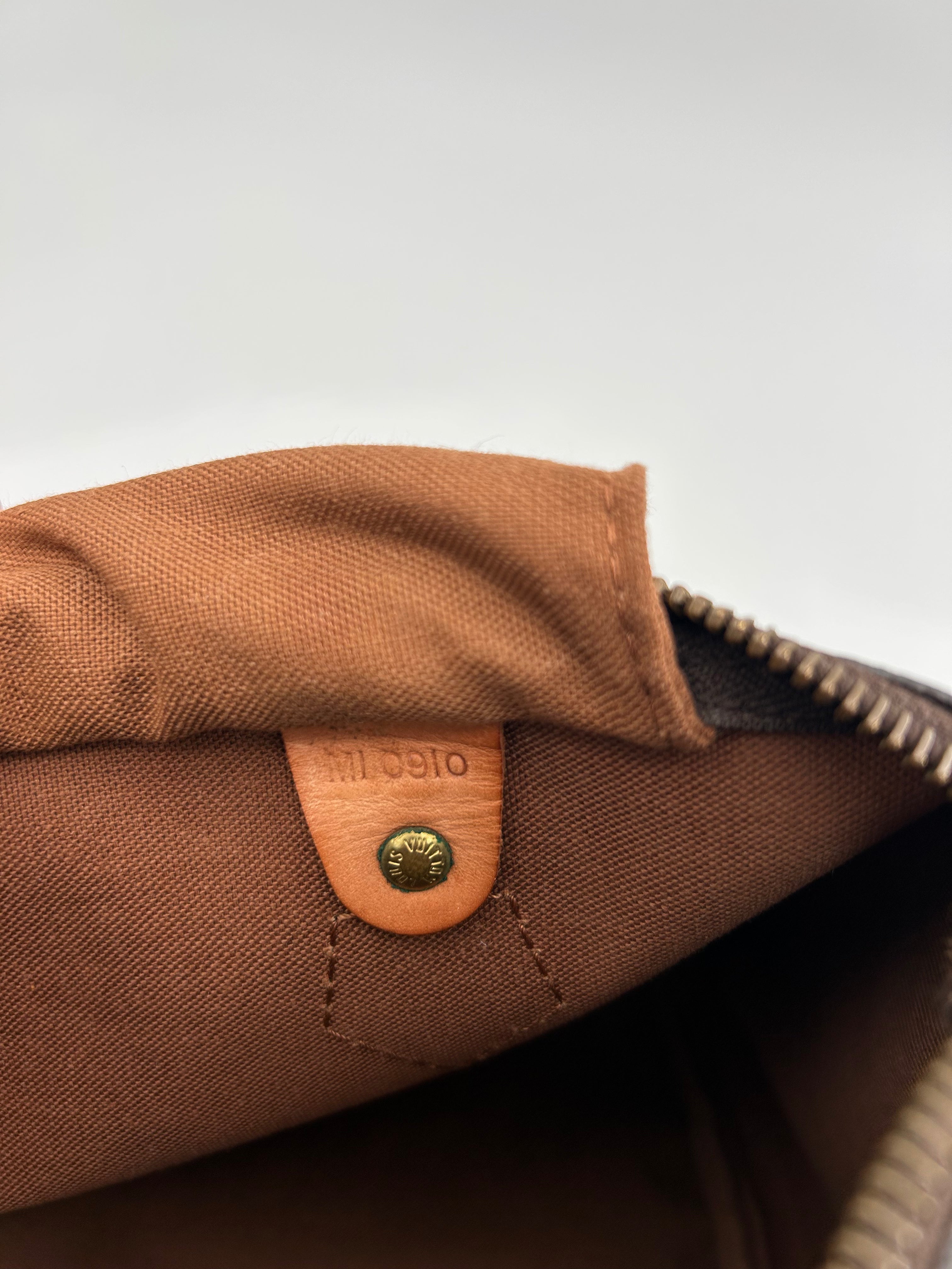 Louis Vuitton Speedy 25, geproduceerd in 1990, met afmetingen 25 × 19 × 15 cm (width x height x depth) en code MI0910. De tas verkeert in goede vintage staat en is zorgvuldig gecontroleerd op authenticiteit en kwaliteit.